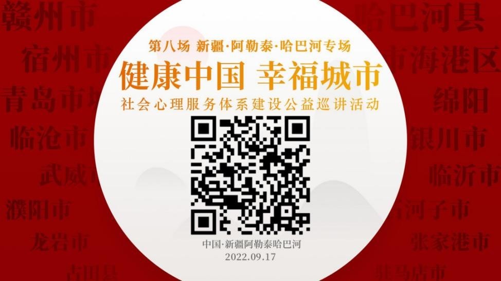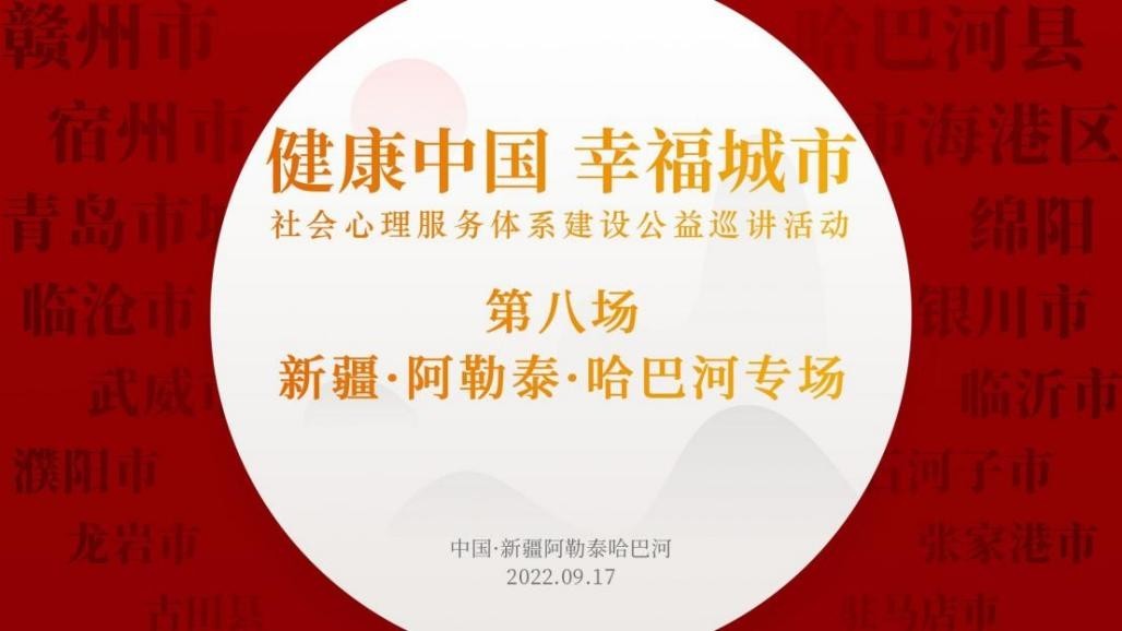 9月17日上午10点,由新疆阿勒泰地区哈巴河县和全国二十余个地区联合主办的“健康中国、幸福城市”全国社会心理服务体系建设公益巡讲活动第8场新疆·阿勒泰·哈巴河专场即将拉开帷幕!