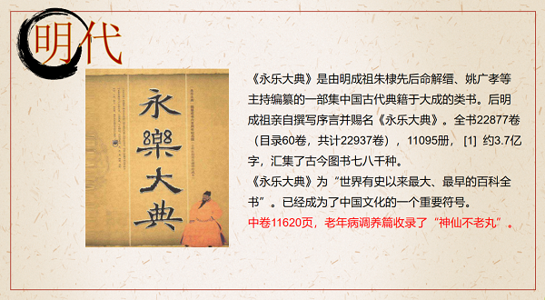 北宋元丰年间,老年医学巨匠陈直所著的《养老奉亲书》(后世邹铉扩编为《寿亲养老新书》)成为传承这份智慧的重要典籍。陈直在该书中收录了华佗改进的方剂,并把它拆解为“神仙不老丸”与“神仙训老丸”,这两道方剂代代相传,蕴含着先辈对衰老机制的深刻体悟与养生精髓。到了明朝初期,宏伟的《永乐大典》将“神仙不老丸”收录于中卷第11620页的“老年病调养”部分,进一步彰显了古方的珍贵价值。
